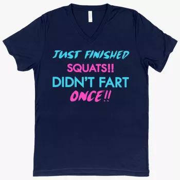 V-Neck Just Finished Squats T-Shirt – Funny Gym Bodybuilders T-Shirt